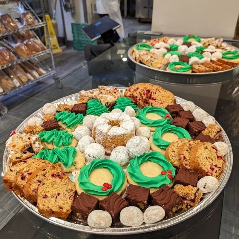 Beautiful arrangements of an array of cookies and holiday items chosen for taste.