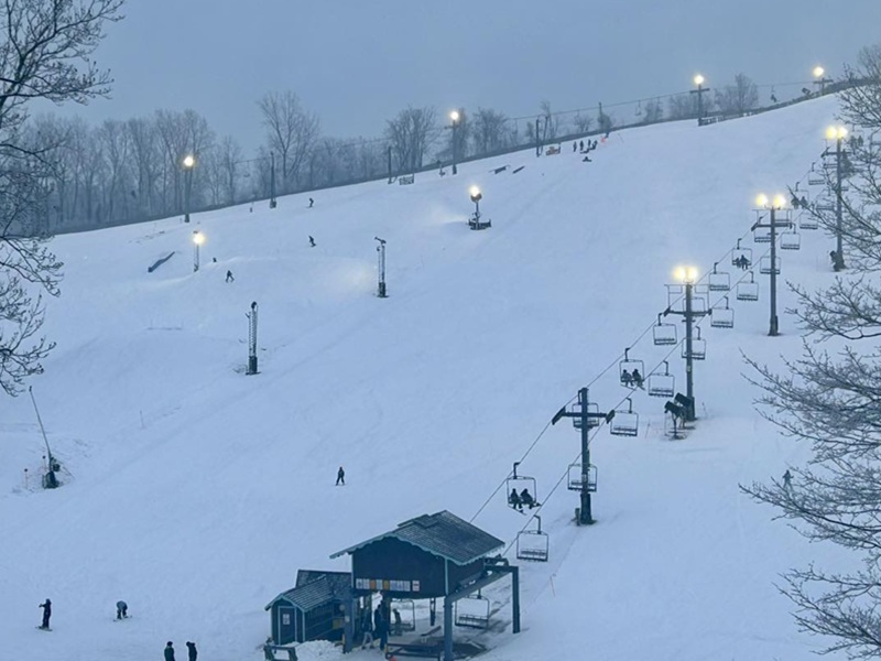 Please call ahead (skiing facilities offer “snow” lines) before heading out for winter fun.