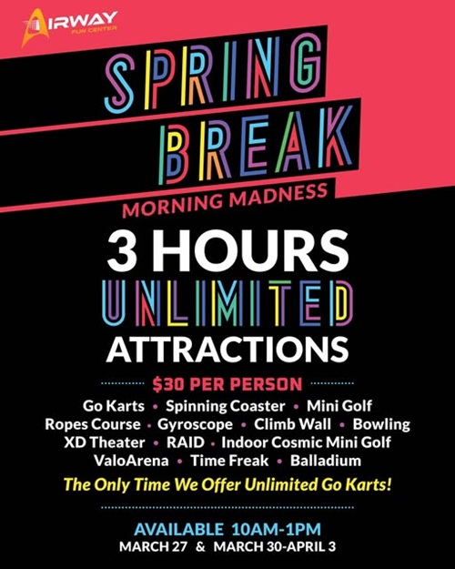 Extended hours during the week of Spring Break, plus the Spring FUNpass allows you to ride and experience every ride and attraction at the park as many times as you want!