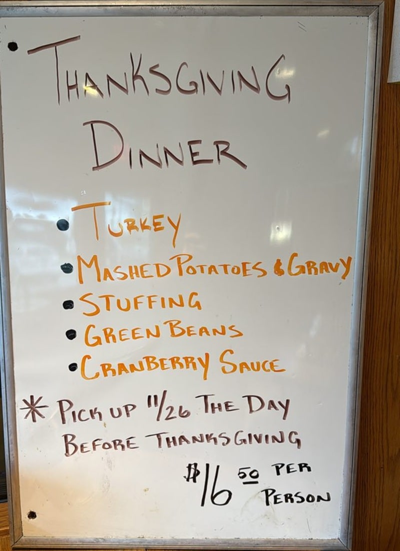 We are doing Thanksgiving Dinner Take-Out again this year!!