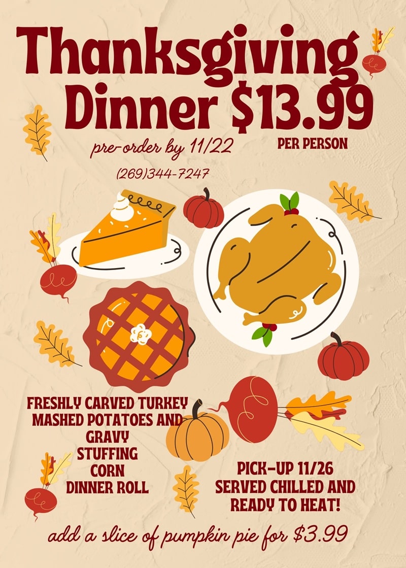 Leave us a comment with your favorite local spots for Thanksgiving dinner in Kalamazoo!